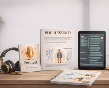 PodCast, AudioCast, PDFs, Vídeo Resumo e outras ferramentas projetadas para facilitar a compreensão do Livro Digital.